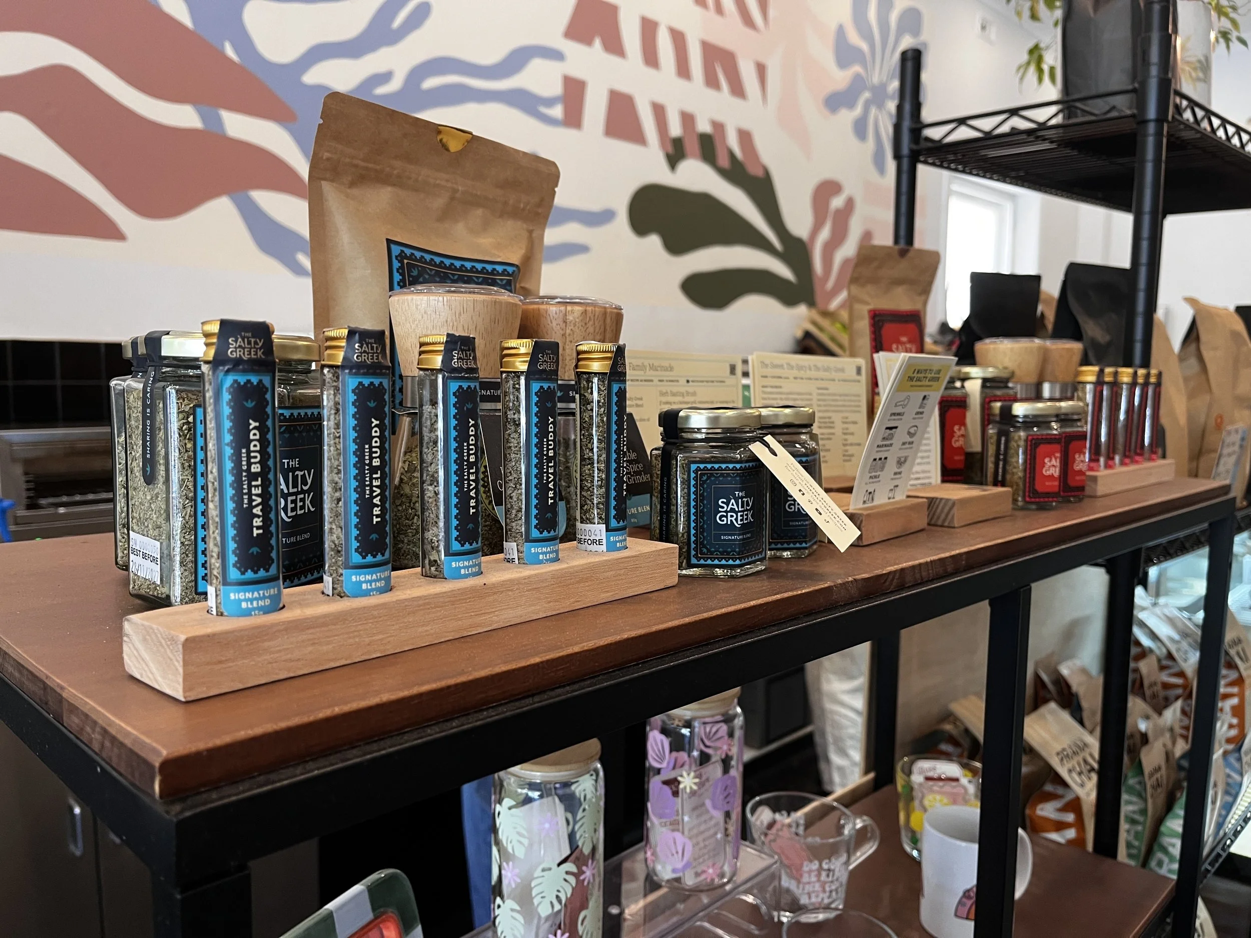 Their curated selection of specialty goods is a sight to behold – many of them local, small producers too! They stock condiments and sauces, honeys and oils, sweets and savouries on the shelves, to drinks and dairy products in the fridge, to freshly baked breads and pastries in the cabinet, and floral arrangements at the window. There’s something new to discover every time, and now you can find The Salty Greek in their good company too.